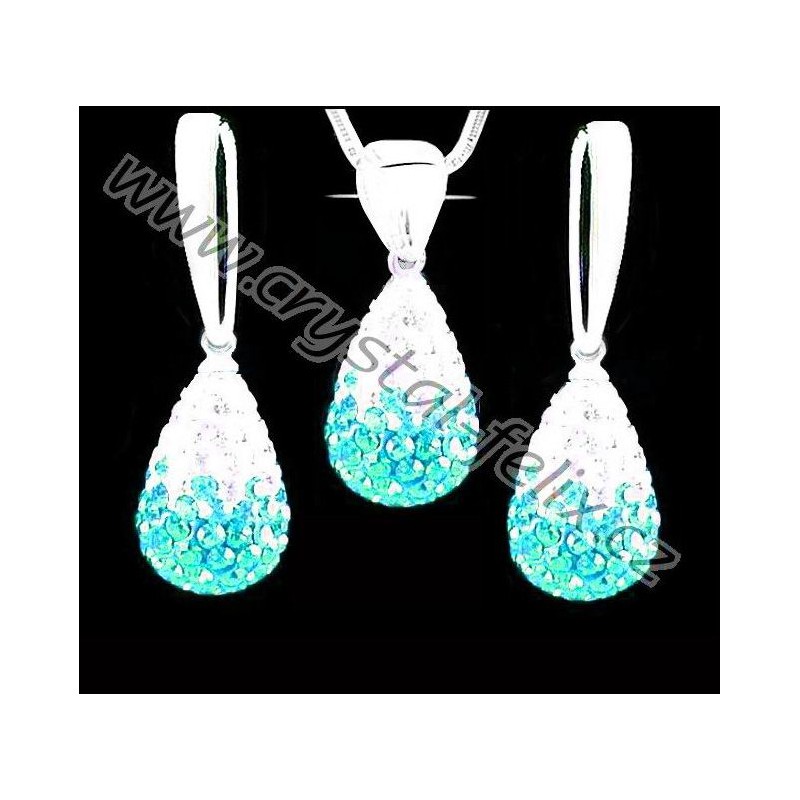 KVALITNÍ STŘÍBRNÝ SET JM ZDOBENÝ krystaly v barvě čiré a tyrkysové, Ag925